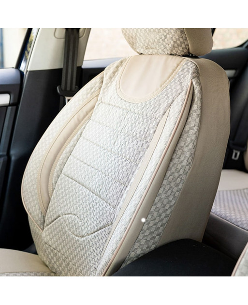 Huse scaune auto din material textil dublu laminat, similar cu tapiteriile originale, cu insertii de piele ecologica si ambele fete dublate cu burete (5 mm grosime).