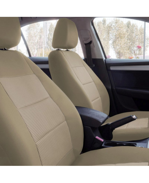 Huse scaune auto din material textil dublu laminat, similar cu tapiteriile originale, cu insertii de piele ecologica si ambele fete dublate cu burete (5 mm grosime).