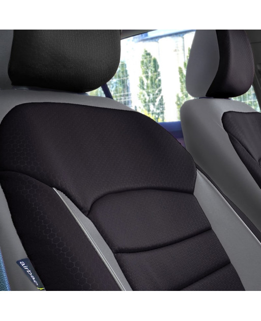 Huse scaune auto din material textil dublu laminat, similar cu tapiteriile originale, cu insertii de piele ecologica si ambele fete dublate cu burete (grosime 5mm).